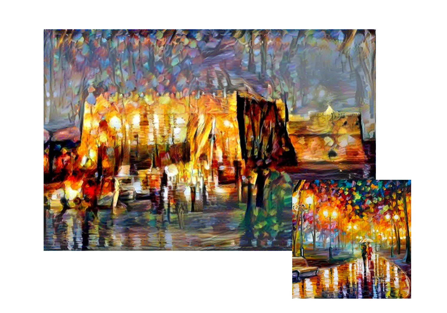 Notice that the authors prefer to use paintings for the style and a random image; it seems like these combinations work best. The main idea is abstracting the content and putting more emphasis on the style!