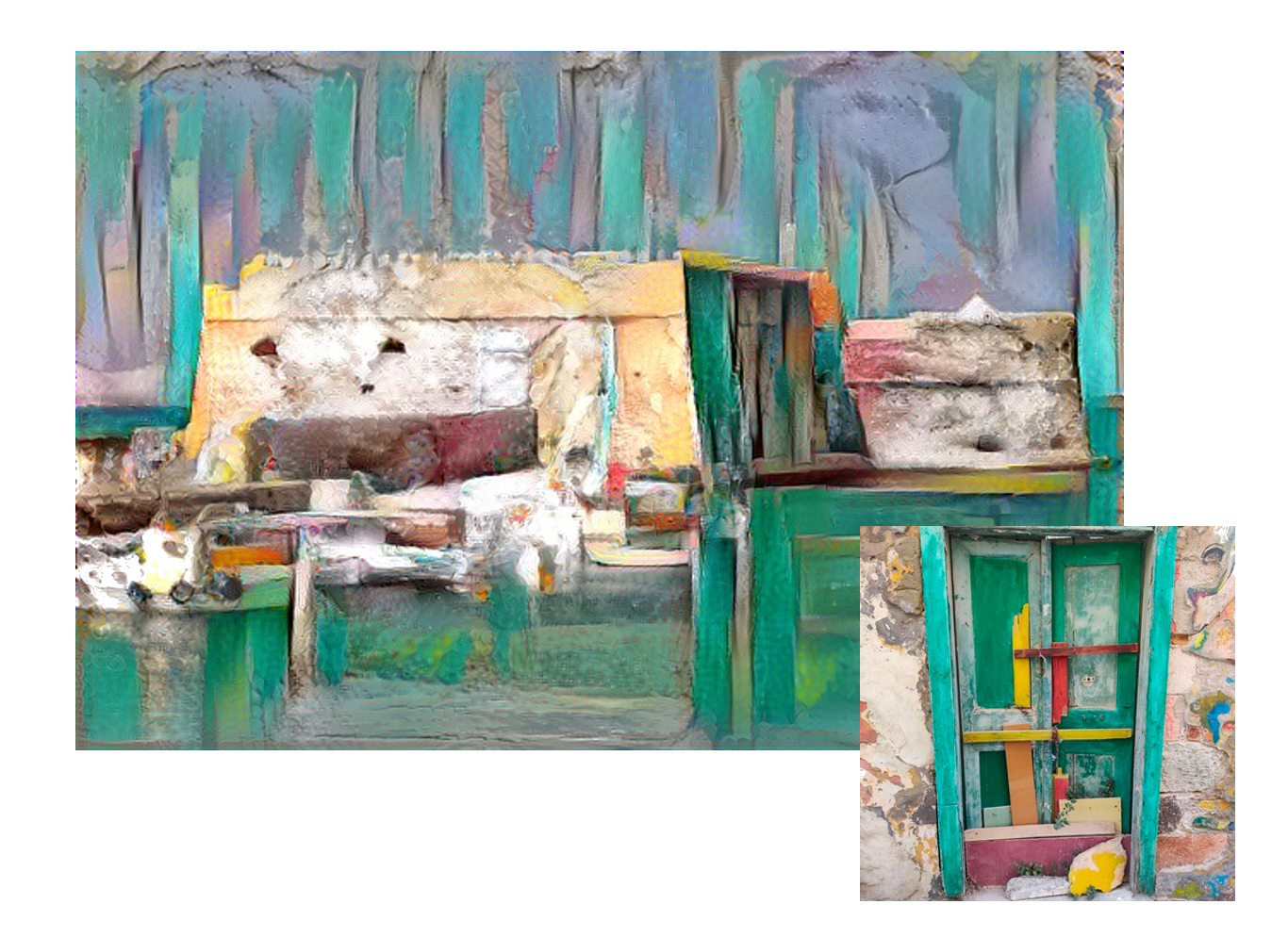 Finally, in order to generate the final image with the style transfer, we return to equation 7, which practically jointly minimises the distance of a white noise image from the content representation of the photograph in one layer of the network and the style representation of the painting in a number of layers of the CNN. The authors also note that: