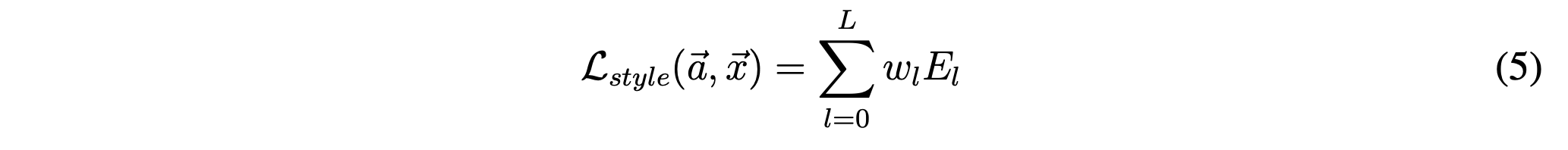 where $\overrightarrow{p}$ is image-A (usually a photograph where we care about the content) and $\overrightarrow{a}$ is image-B (usually a painting where we care to retrieve the style). Then $\alpha$ and $\beta$ respectively concern weighting factors for content and style reconstruction.