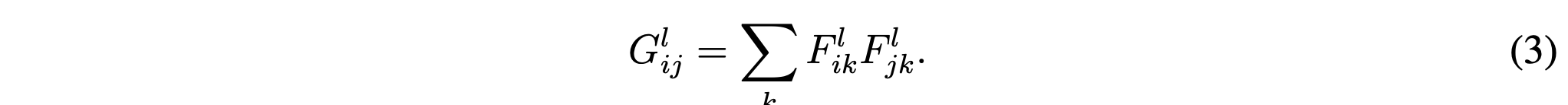 products between the generated set of feature vectors, called a “Gram matrix $G$”, as per the below equation: