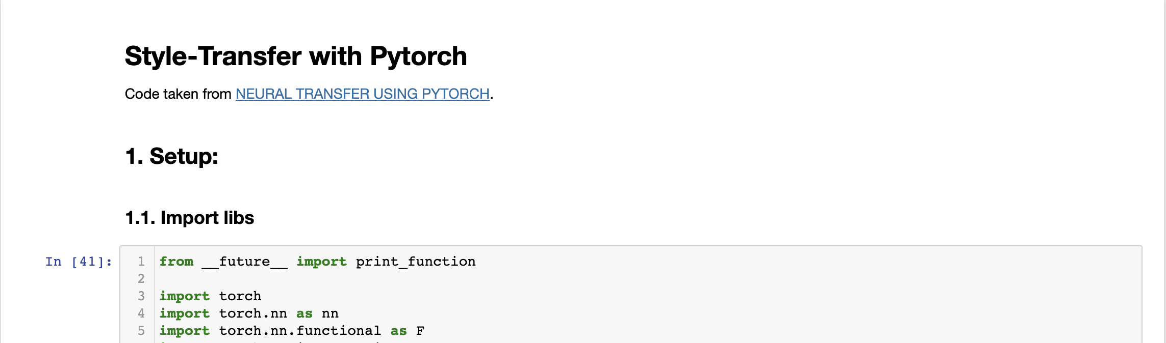 PyTorch website you will find a very well written tutorial on how to apply style transfer with PyTorch. I provide